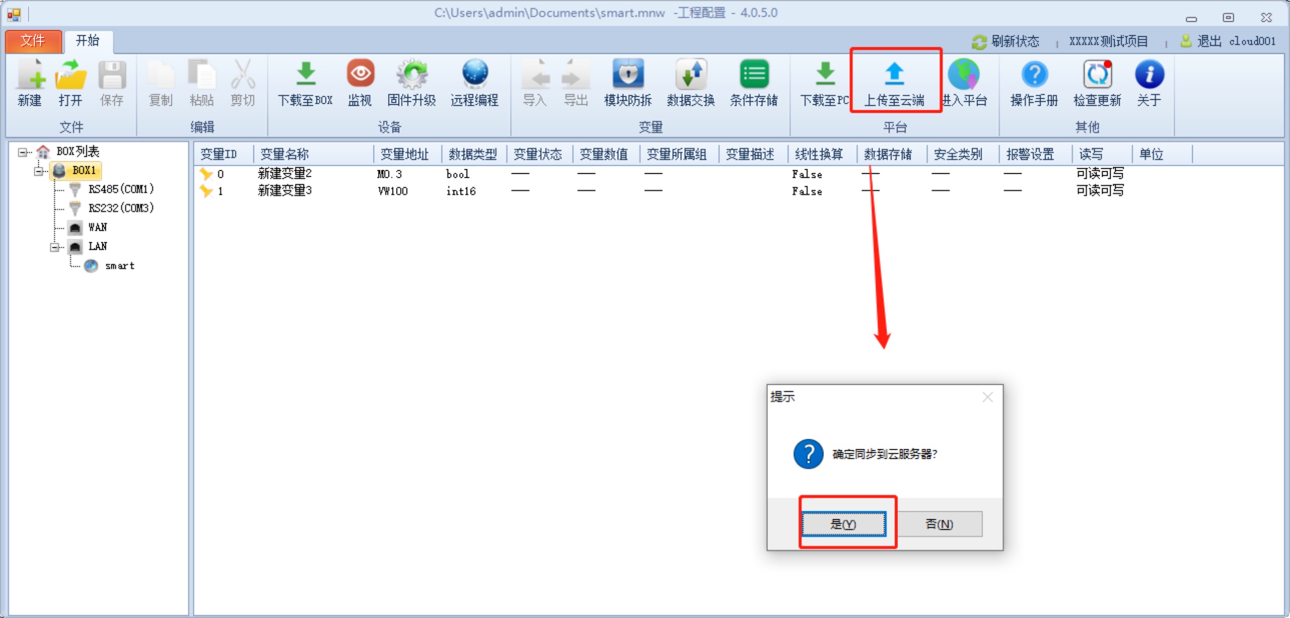 2、 設(shè)置完后下載到box 后并上傳到云端(詳見3.1.6章節(jié))。