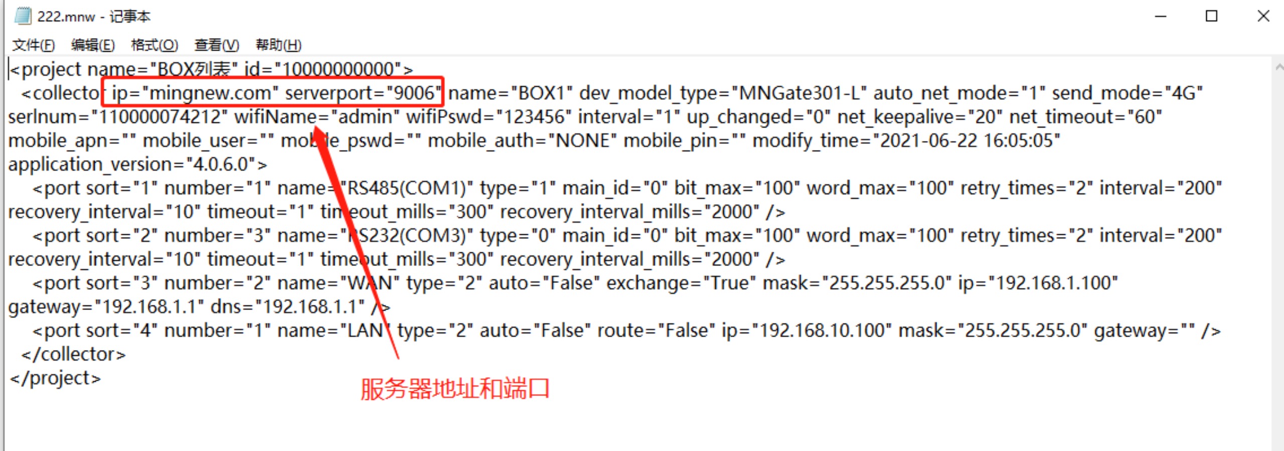 配置文件使用記事本打開,檢查配置文件的服務(wù)器地址及端口是否正確,如果不正確修改后保存,配置文件重新打開文件,然后下載到BOX,并且上傳到云端。