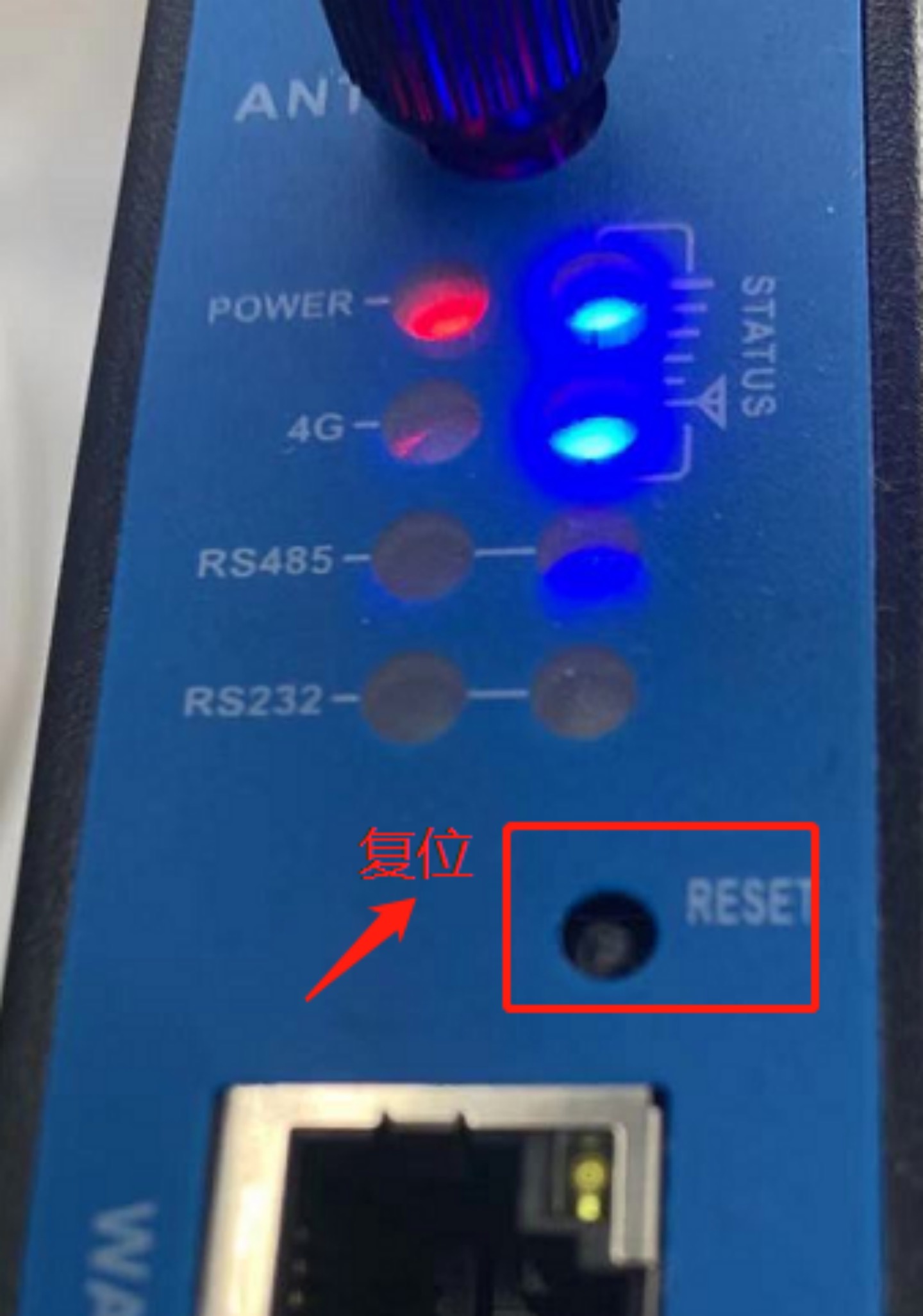 (2)如果盒子不在線并且不記得IP可以按下reset 按鈕10s左右重置,重置成功信號(hào)質(zhì)量燈快速閃爍5次。