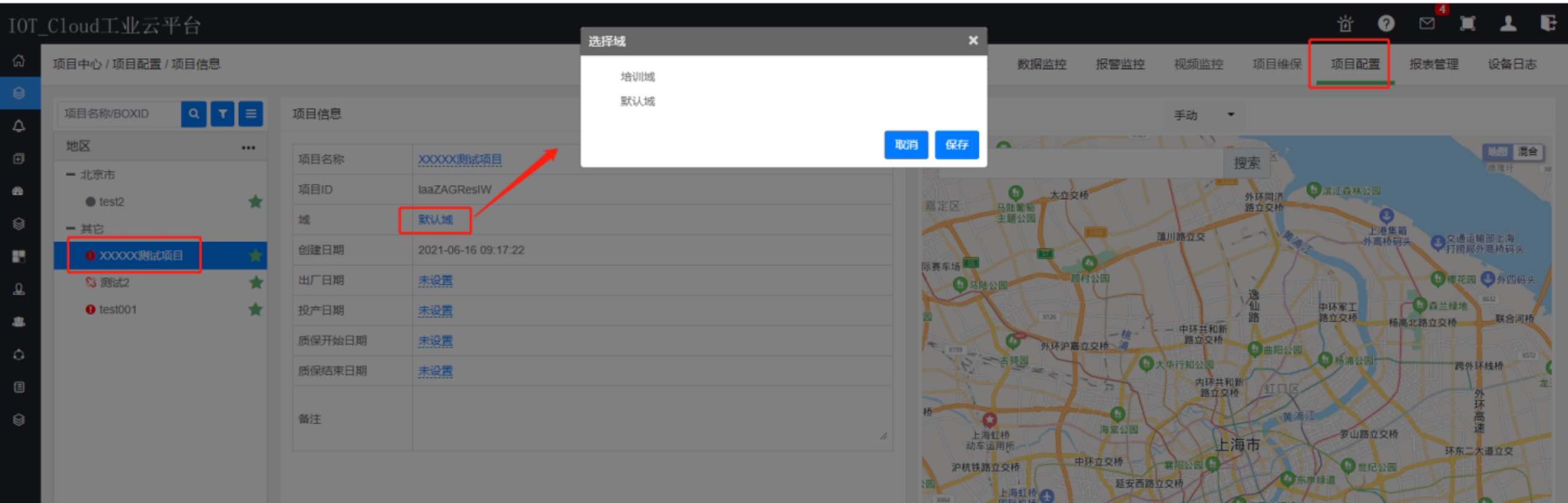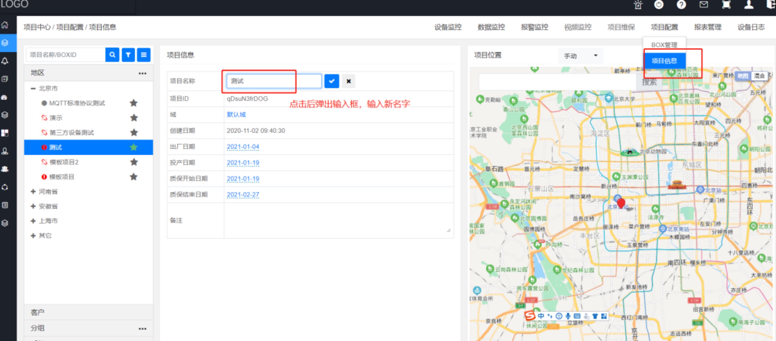 進(jìn)入【項(xiàng)目中心】—>【項(xiàng)目配置】—>【項(xiàng)目信息】,點(diǎn)擊項(xiàng)目名稱(chēng)