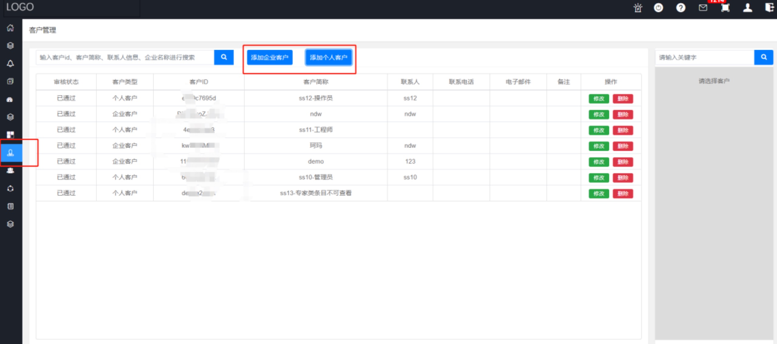 進(jìn)入【客戶管理】,添加企業(yè)用戶或者個(gè)人用戶
